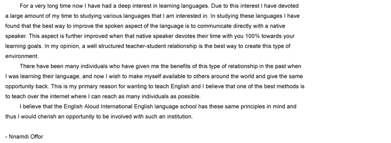 Online Teacher, English Aloud Oct. 2008 - May 2010